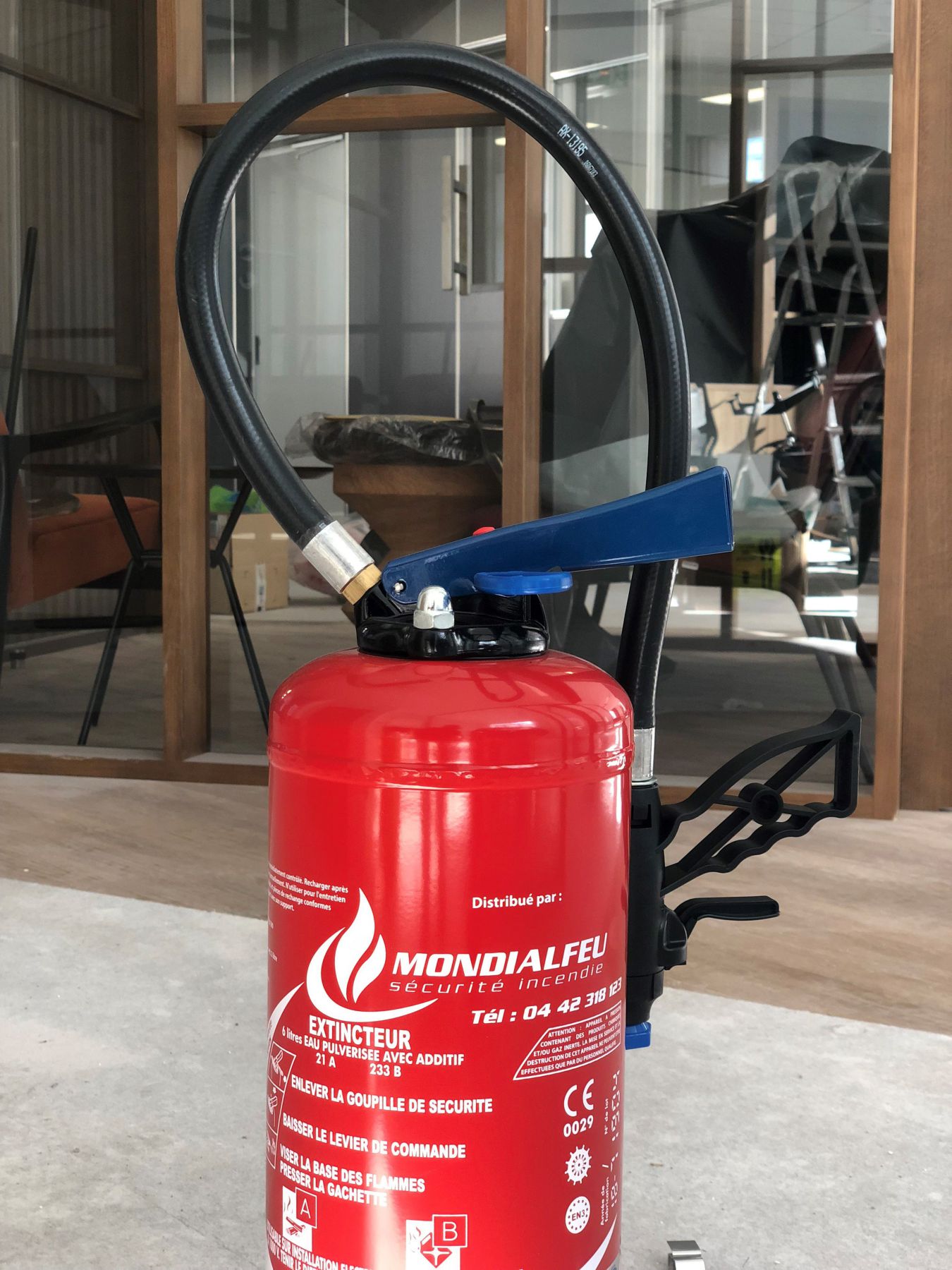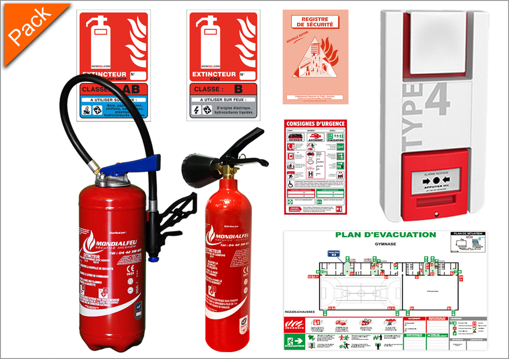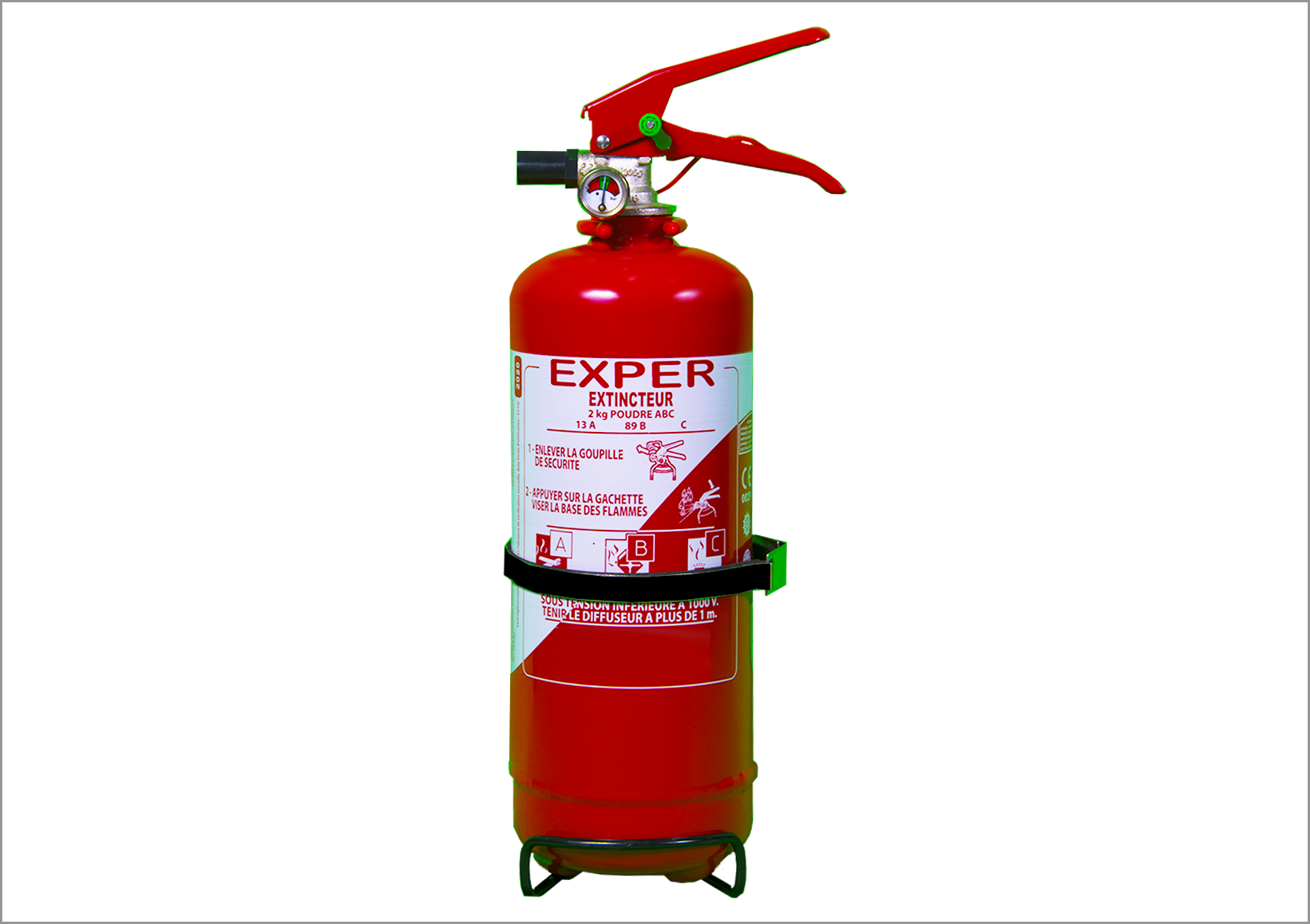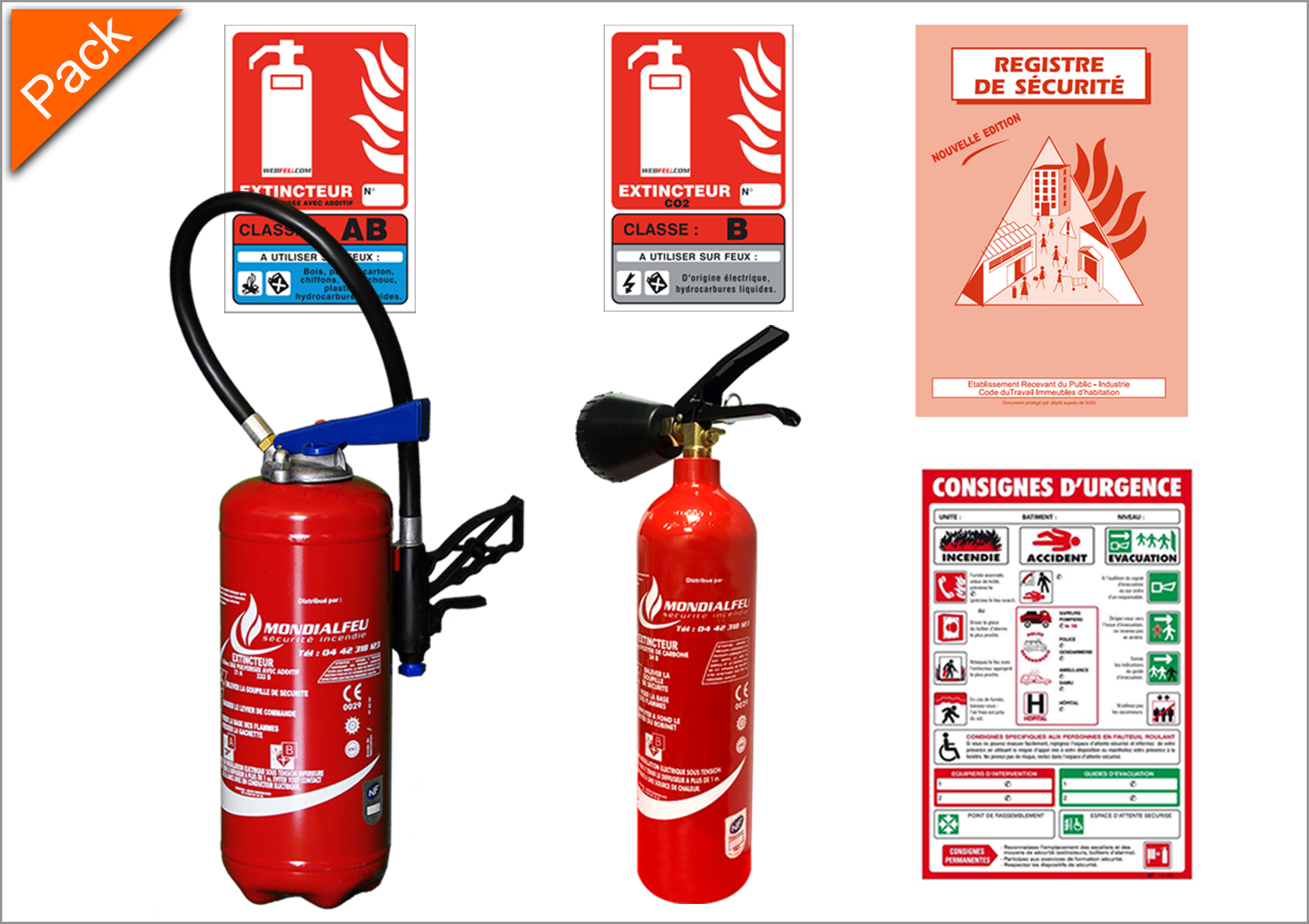 Extincteurs BIO, CO2 pour les feux électriques, extincteurs à poudre pour les feux de liquides inflammables, extincteurs à eau pour les feux de solides (bois, papier, carton...), extincteurs de classe F pour les feux de friteuses et auxilliaires de cuisson, extincteurs spéciaux pour feux de batteries au lithium.