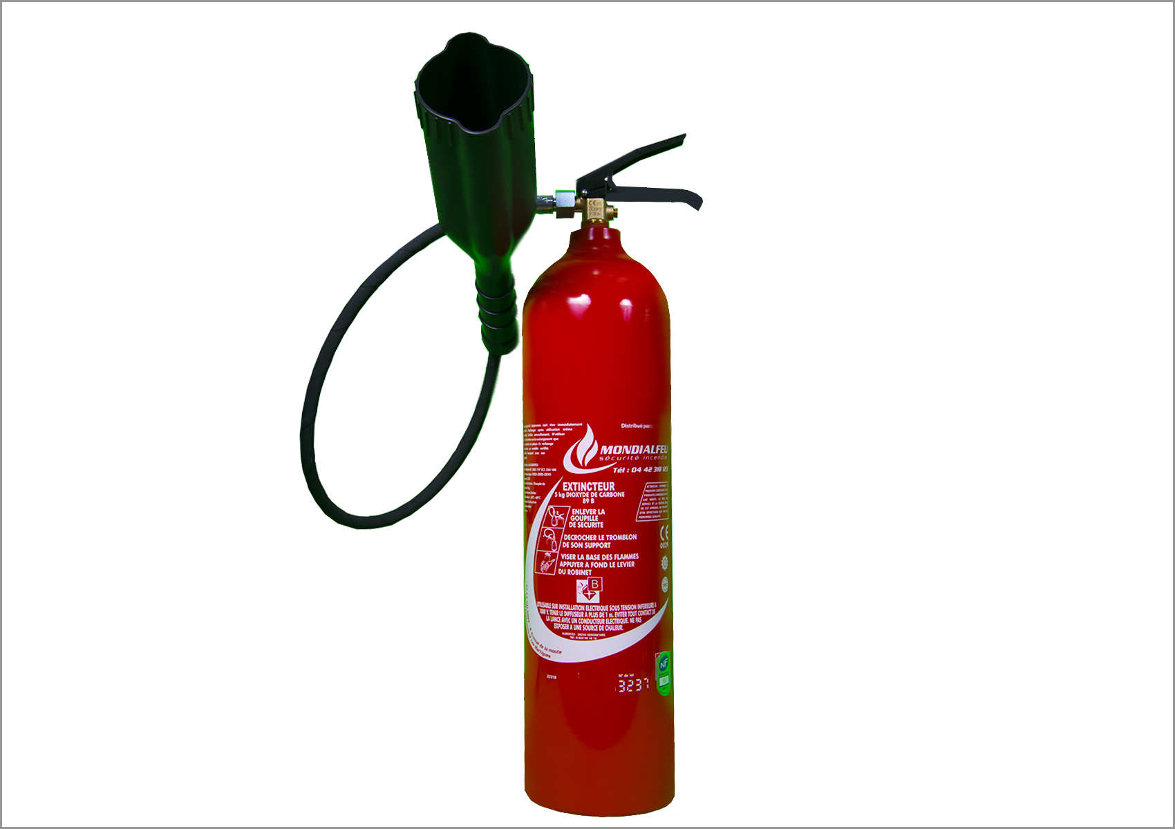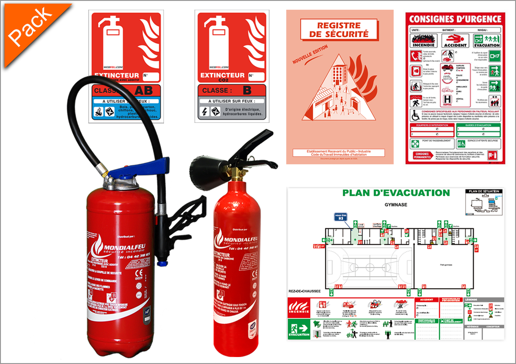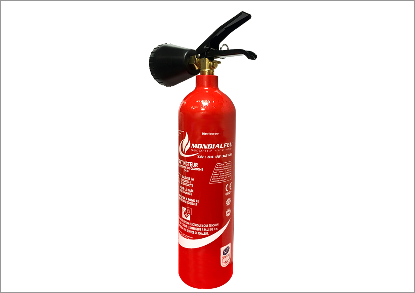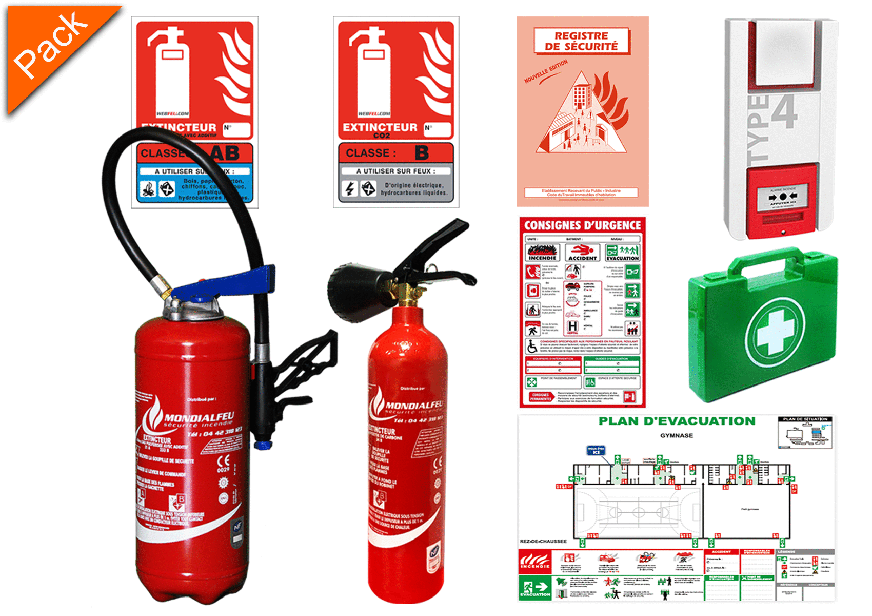 Extincteurs BIO, CO2 pour les feux électriques, extincteurs à poudre pour les feux de liquides inflammables, extincteurs à eau pour les feux de solides (bois, papier, carton...), extincteurs de classe F pour les feux de friteuses et auxilliaires de cuisson, extincteurs spéciaux pour feux de batteries au lithium.