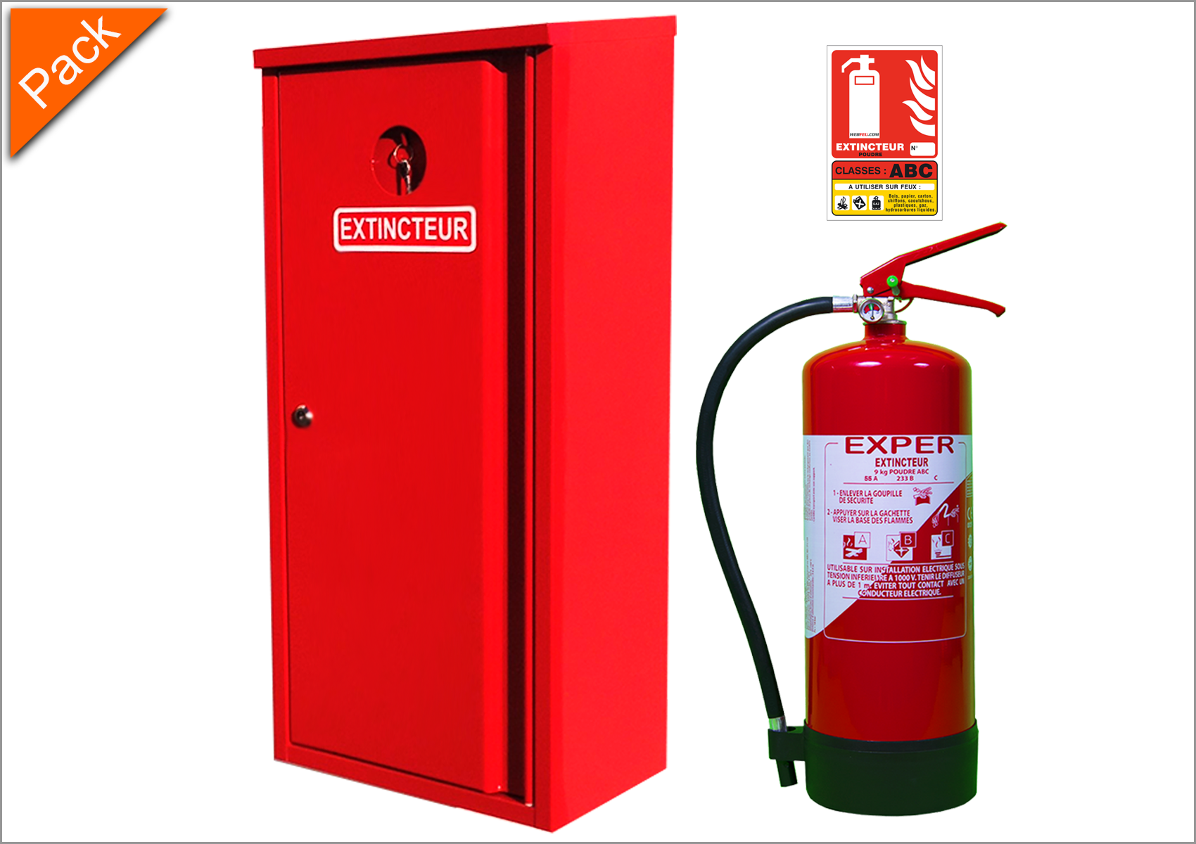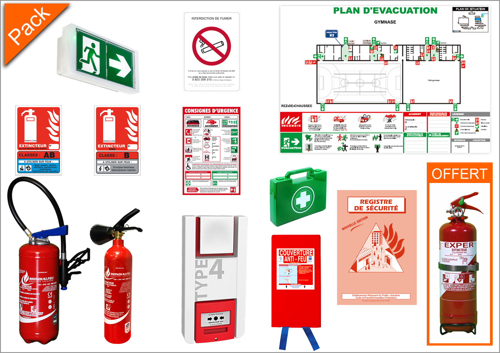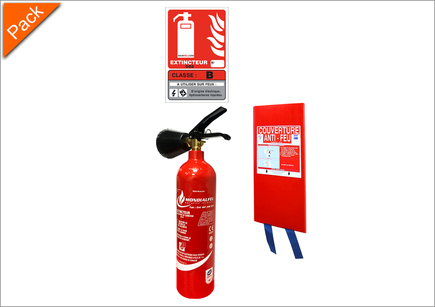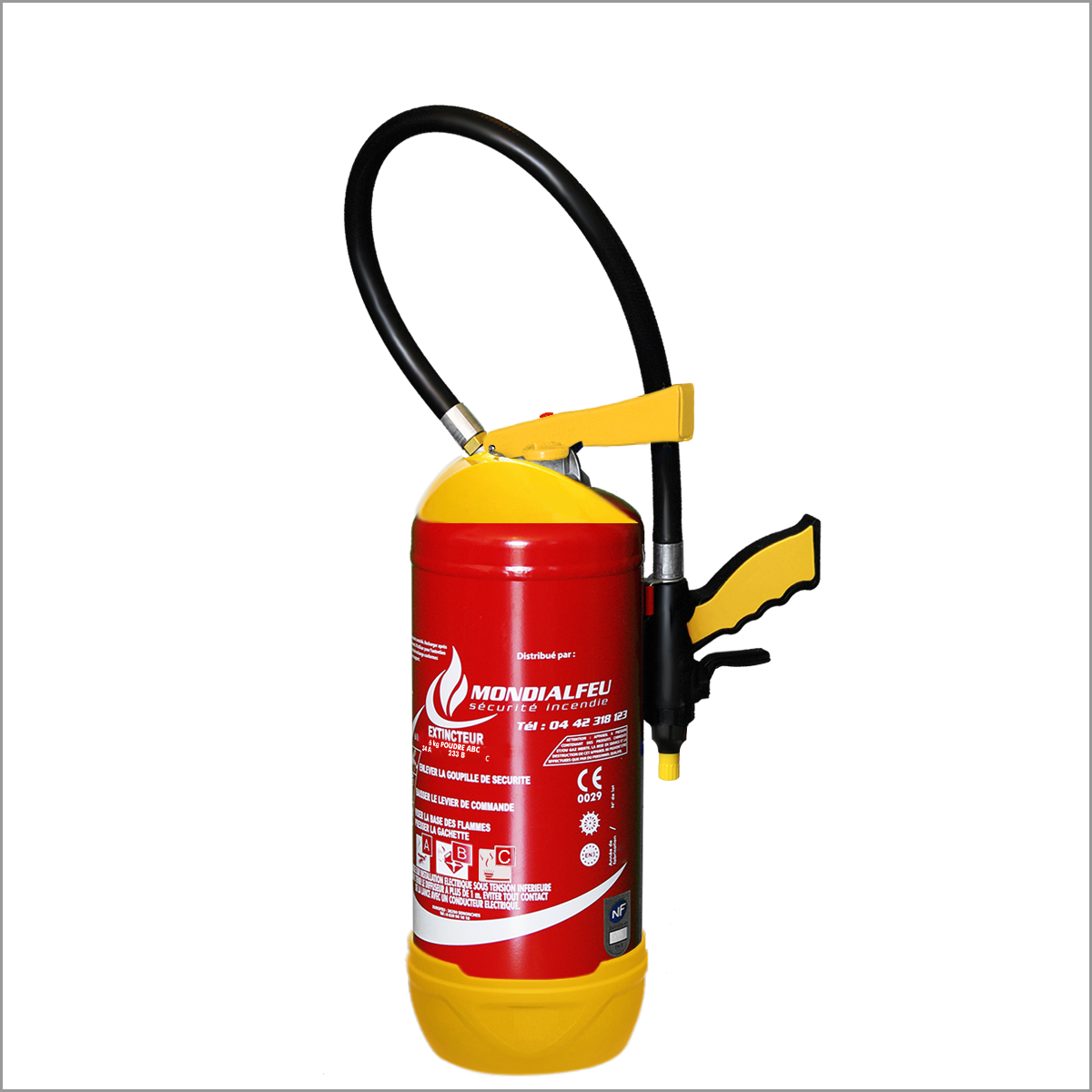 Extincteurs BIO, CO2 pour les feux électriques, extincteurs à poudre pour les feux de liquides inflammables, extincteurs à eau pour les feux de solides (bois, papier, carton...), extincteurs de classe F pour les feux de friteuses et auxilliaires de cuisson, extincteurs spéciaux pour feux de batteries au lithium.