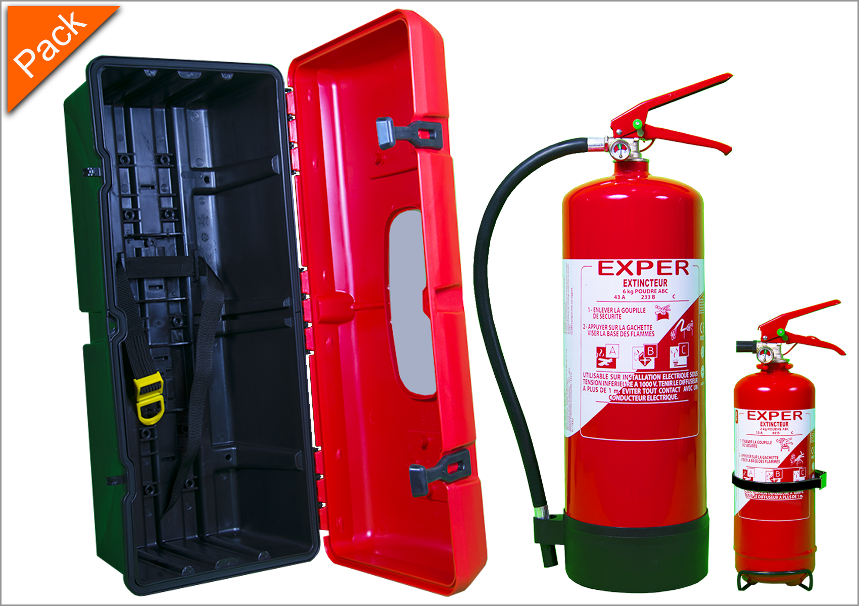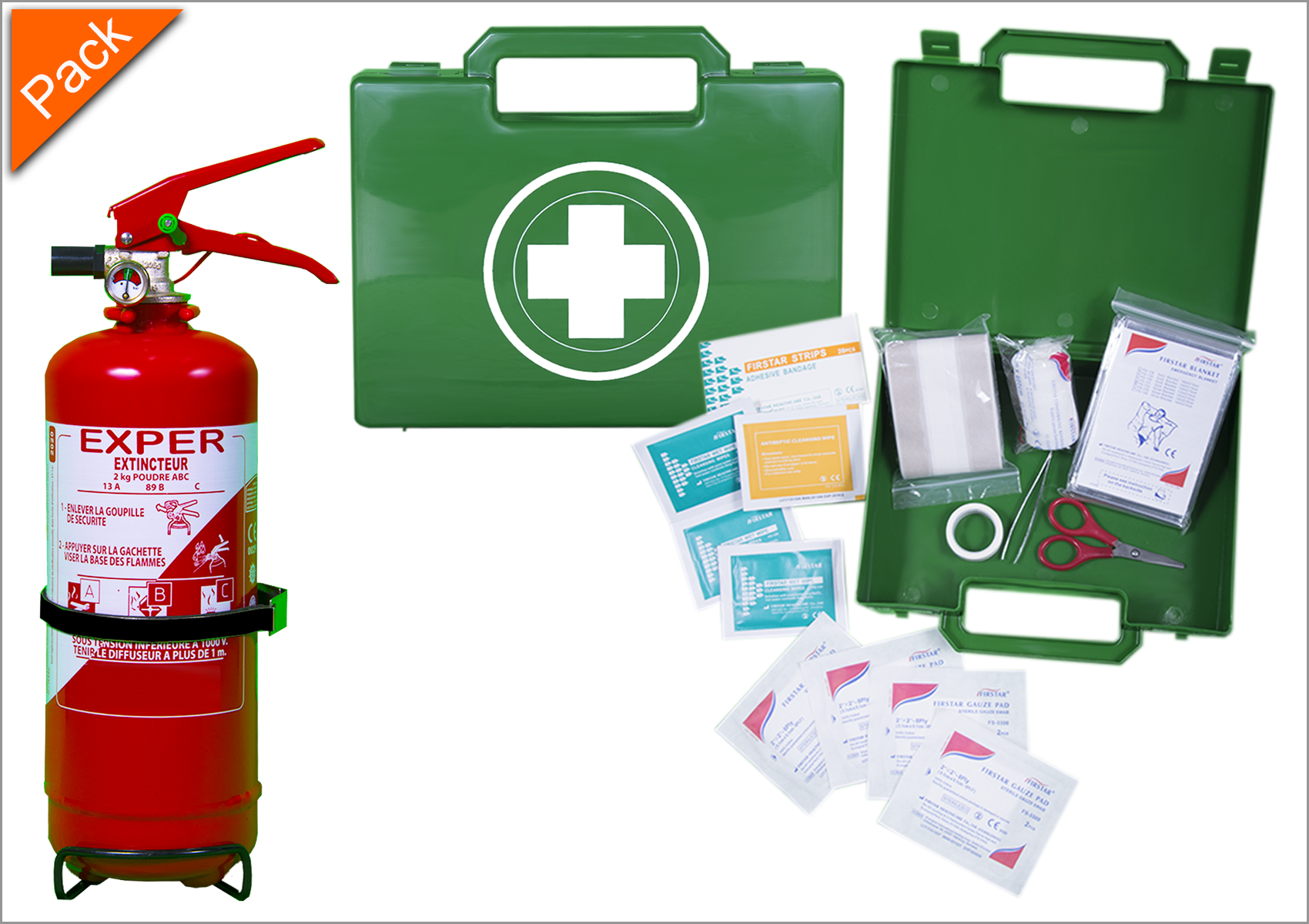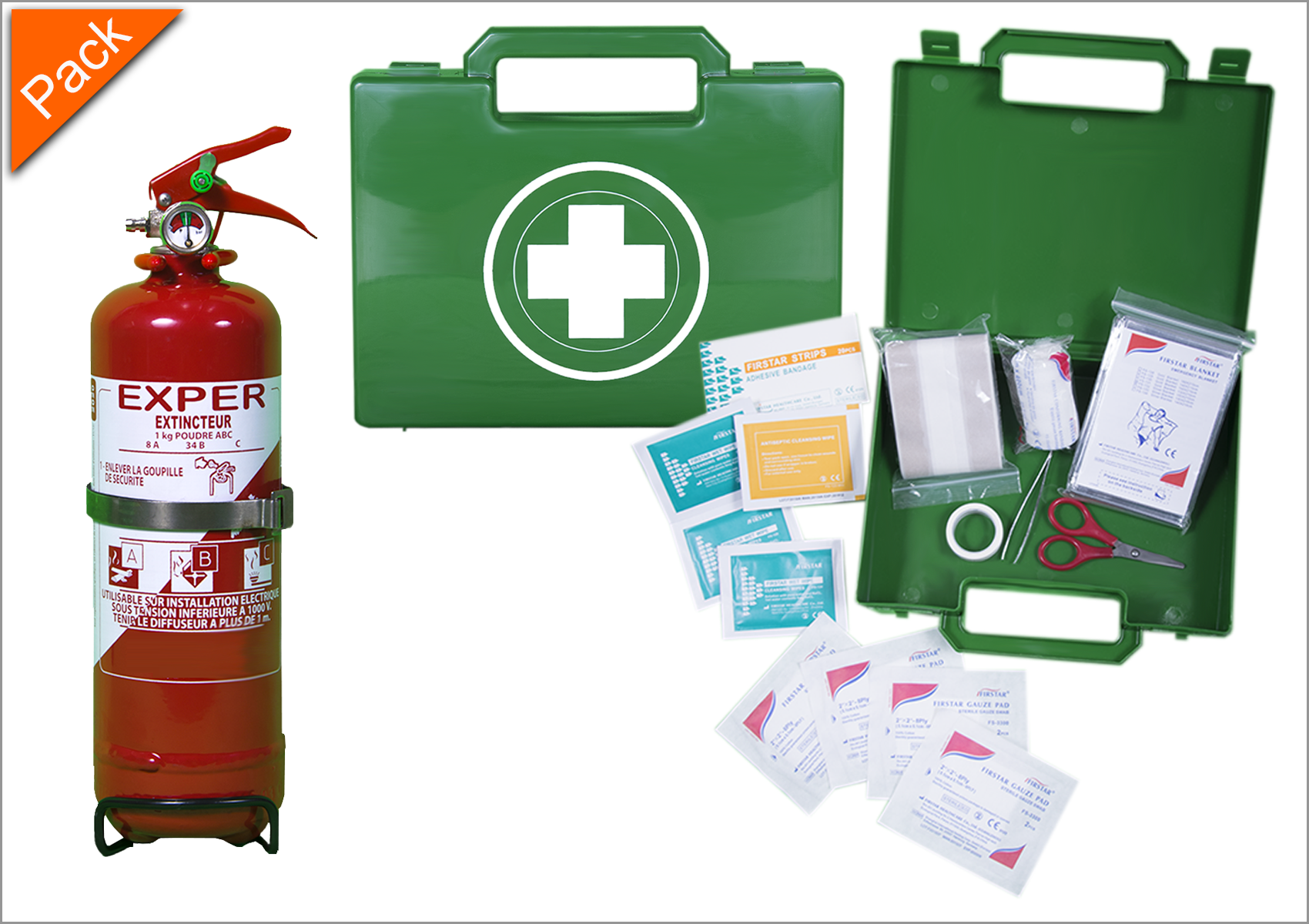 Extincteurs à poudre, CO2, eau pulvérisée, extincteurs vert (Douche de sécurité portative), Trousses de 1er secours, détecteurs de gaz portable...
