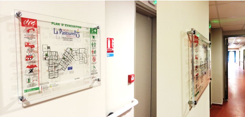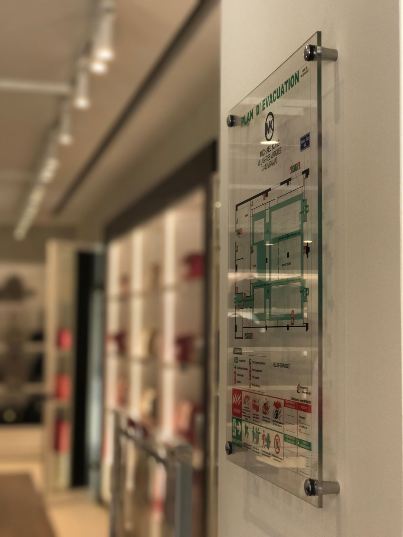 > Si votre société ou commerce dispose d'une déco chic et design, nous vous conseillerons un plan en plexiglass monté sur des entretoises chromées.