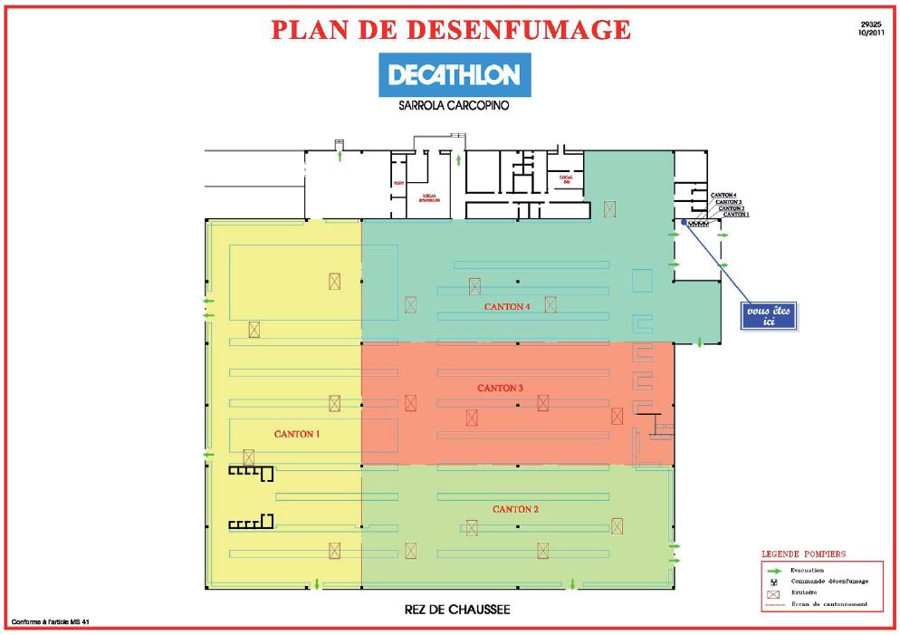 Les élements de sécurité devant figurer sur les plans sont importants, ils représentent l'emplacement des extincteurs, RIA, commande désenfumage...