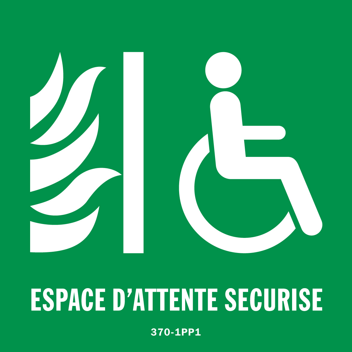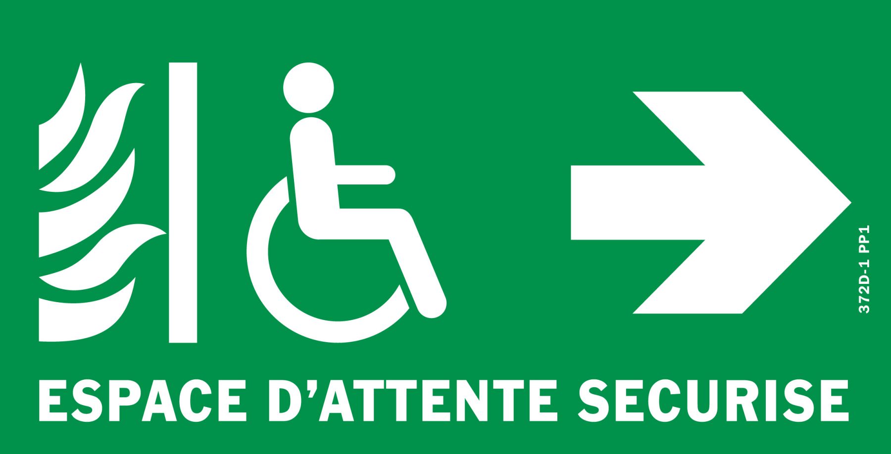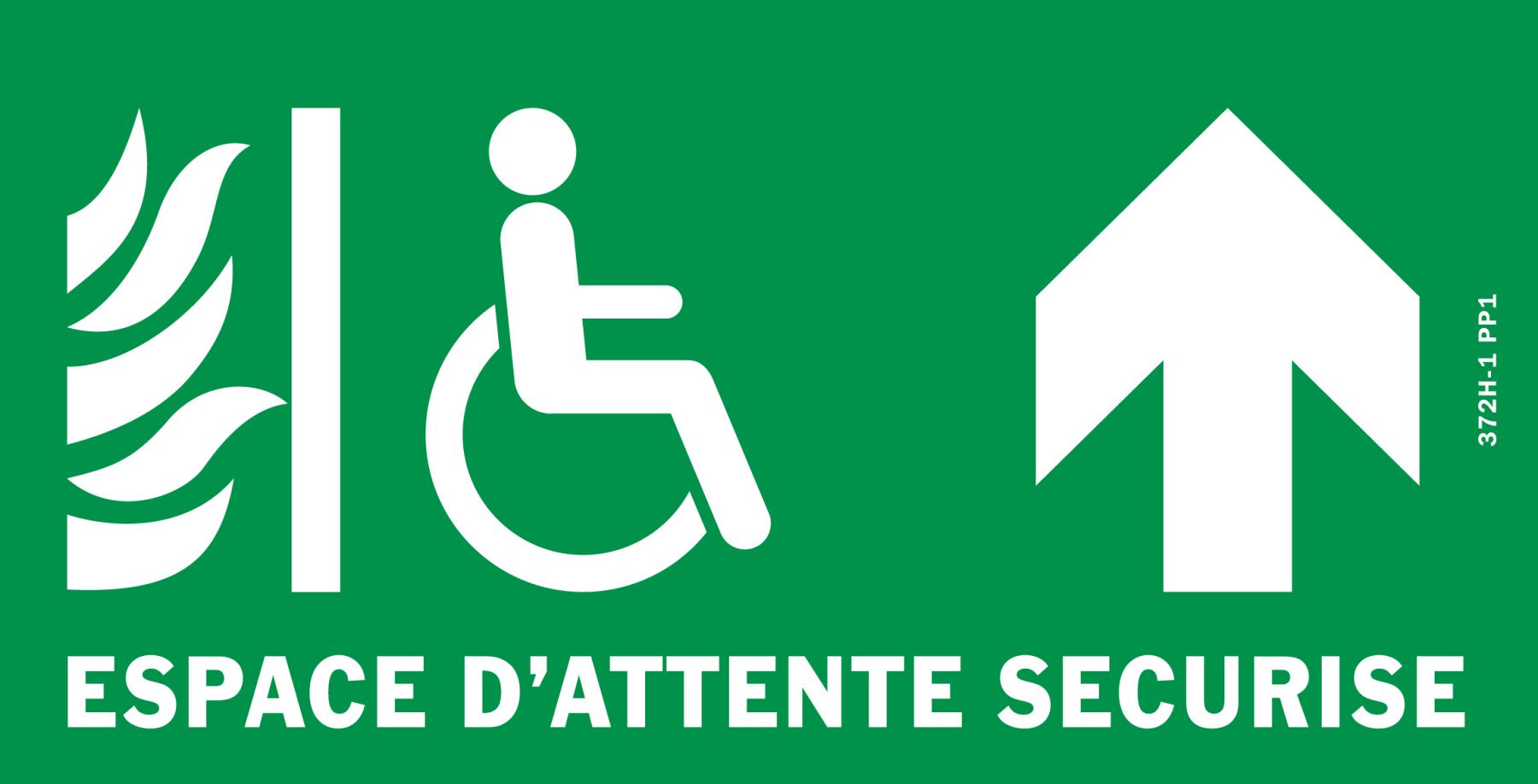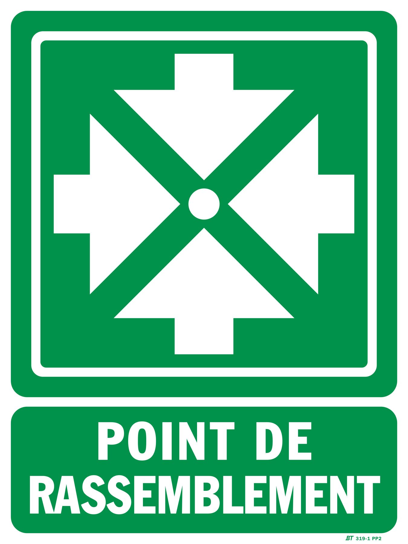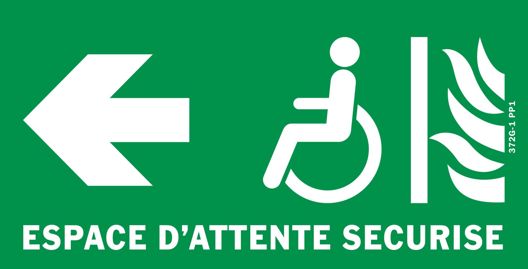 Panneau d'évacuation, point de rassemblement, espace d'attente sécurisé...