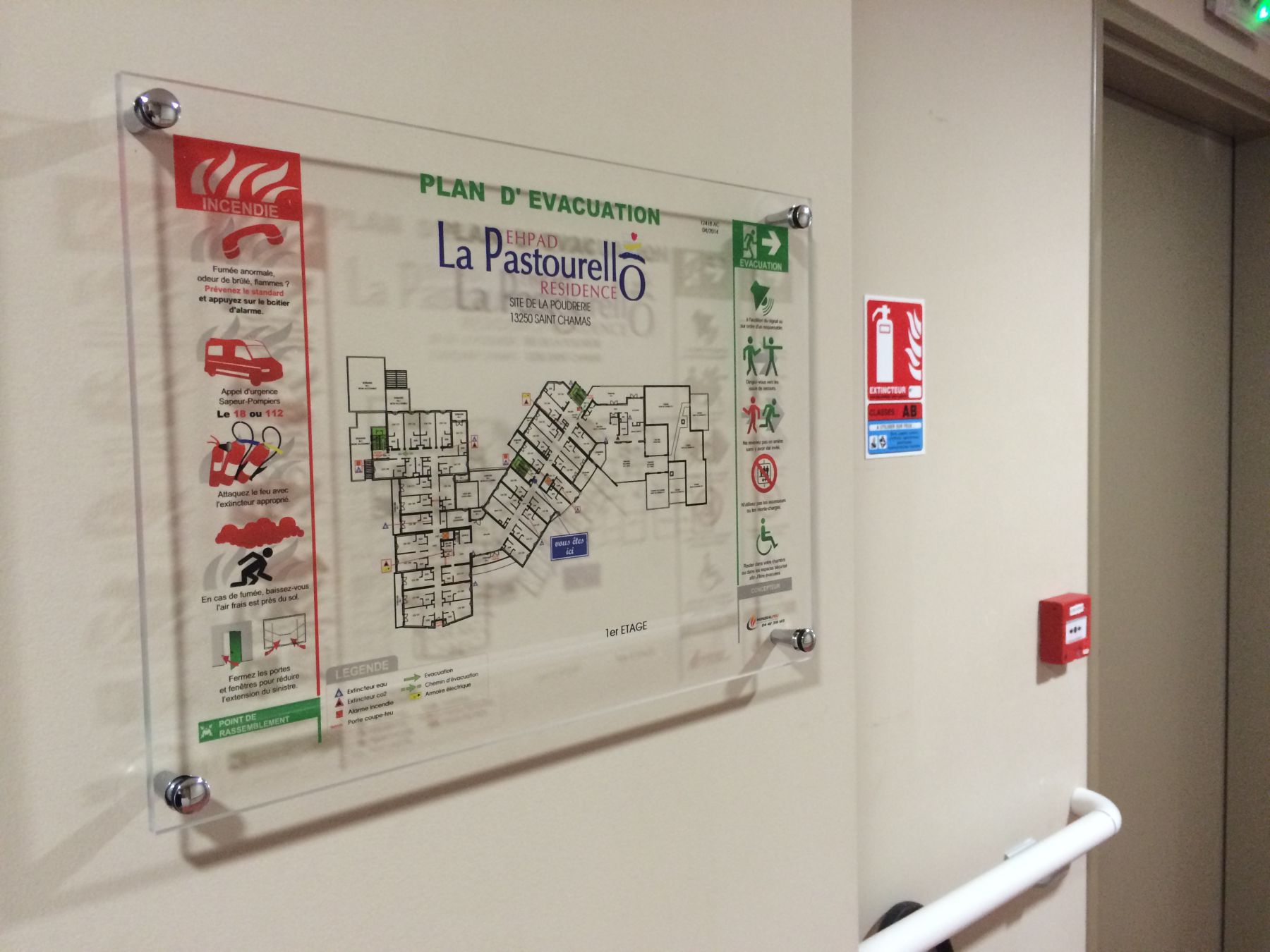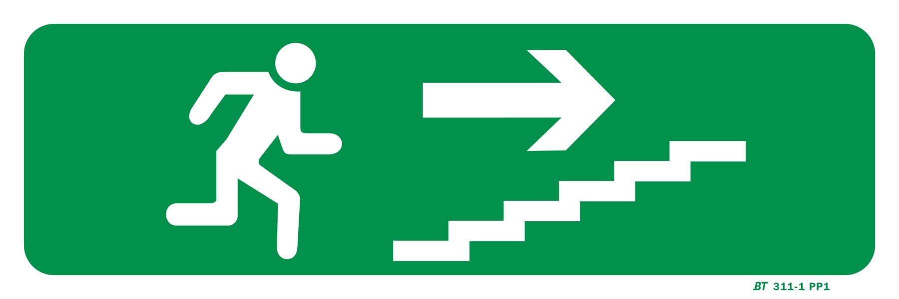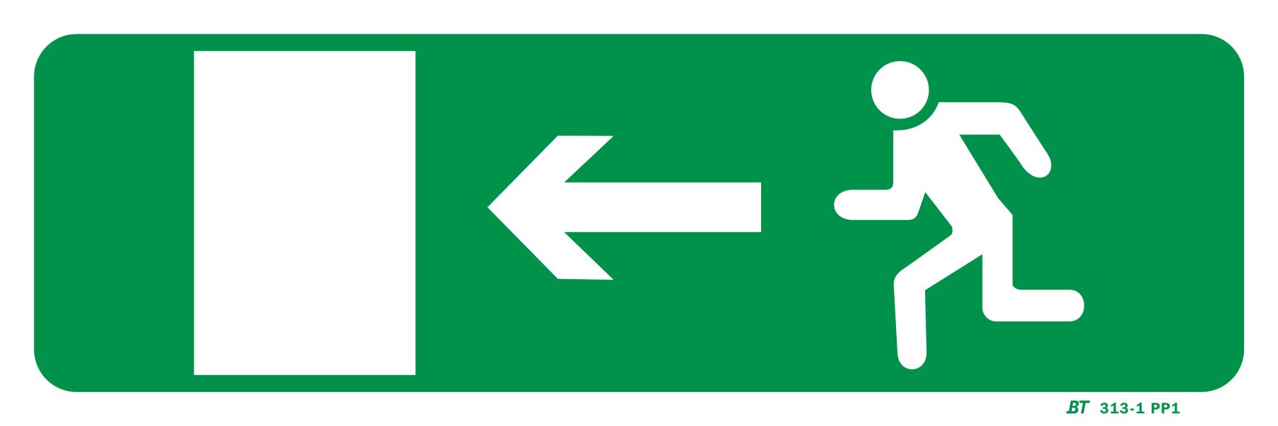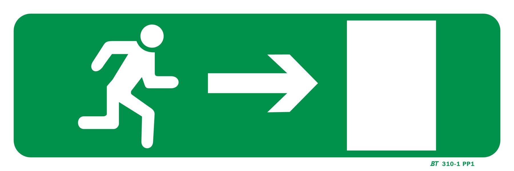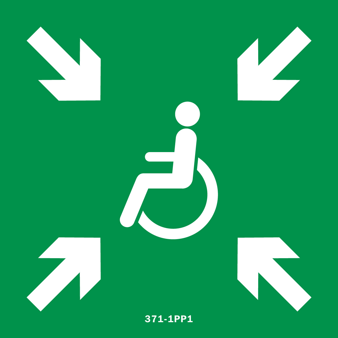 Panneau d'évacuation, point de rassemblement, espace d'attente sécurisé...