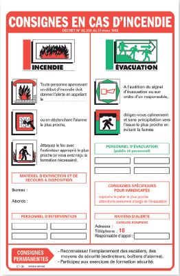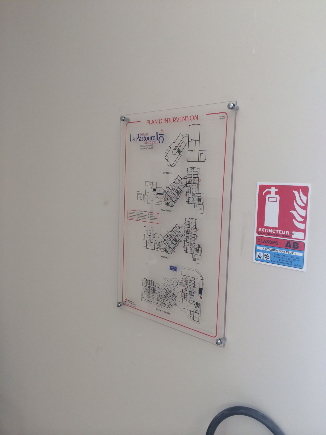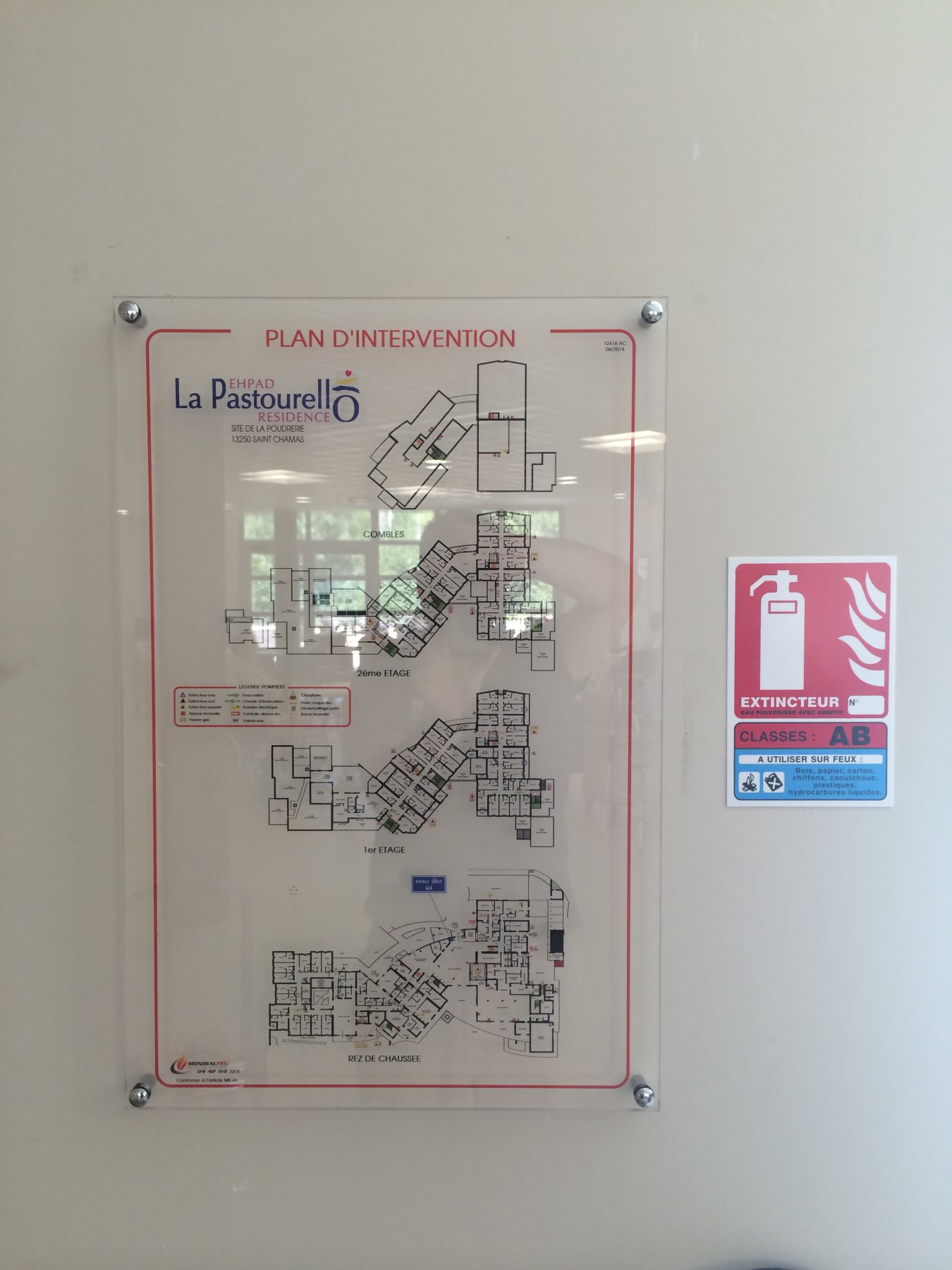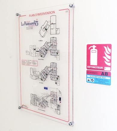 Les plans de sécurité jouent un rôle important. Les plans d'évacuation servent à se repérer et à évacuer en cas d'incendie alors que les plans d'intervention servent aux forces d'intrevention (Pompiers par exemple).