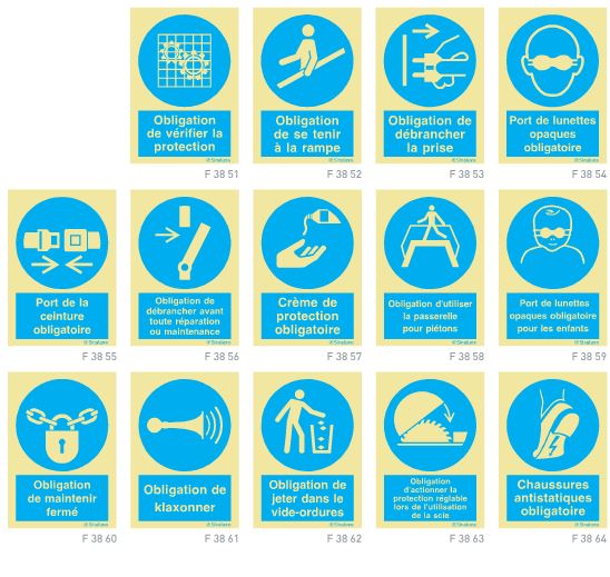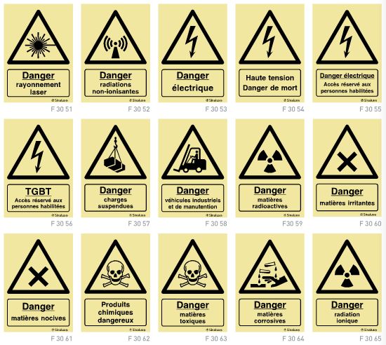 > Le danger, interdiction sont symbolisés sur fond Rouge,